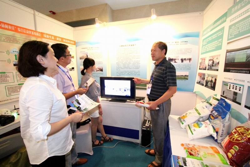 展會中,龍亢農場推出了“開心稻田”有機米、雁湖面粉和倮倮米業產品,楊永華向各界到訪代表介紹了龍亢農場物聯網發展新成果和現代農業發展新模式。農業部農機化司司長、原農墾局局長李偉國專程趕來祝賀并參觀了皖墾展品。