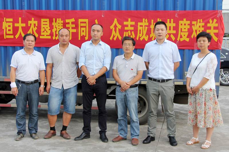 720晚,恒大地產集團合肥有限公司投資總監陳華帶隊到安徽華陽河農場開展防汛救災慰問,代表該公司捐助了礦泉水200箱、精制大米1噸、菜油1000斤等救災物資。