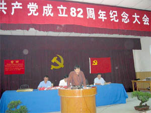 七月一日上午,壽西湖農場隆重舉行了《慶祝中國 共產黨成立82周年紀念大會》,機關和基層150多名 黨員代表參加會議,黨委副書記林慶年主持會議, 宣布《中共壽西湖農場關于表彰2002年度兩先一優 的決定》,會上對全場2002年度先進黨支部、先進 黨小組和優秀黨員進行了表彰,9名新同志舉行了入 黨宣誓儀式,場長、黨委副書記劉國強同志發表了 重要講話,要求全場廣大黨員干部振奮精神,堅定 信心,艱苦奮斗,廉潔自律,繼續發揚共產黨員的 先鋒模范作用,作好人民的表率,副場長蔣國君帶 領大家學習了人民日報社論《中共中央關于在全黨 繼續掀起學習三個代表重要思想的新高潮》,會議 時間一個多小時,廣大黨員一致認為這次會議既精 練高效又莊嚴隆重,對全場廣大黨員具有很深的教 育的意義。