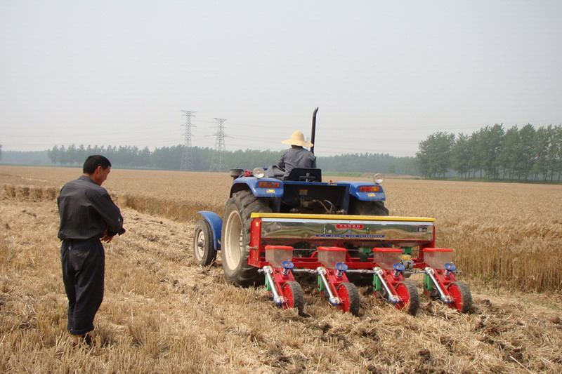 65,夾溝農(nóng)場四分場職工王繼堂家麥田里,小麥機收過后,他又開進通過農(nóng)機補貼購置的播種機進行玉米大豆試播,引來40余名干部職工現(xiàn)場觀摩。效果很好,大豆行,玉米更沒問題,王繼堂十分興奮地說。