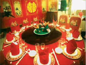 如果說你還不完全知道“人生八大喜”的含義,那 么建議你來黃山大廈走一走、看一看,黃山大廈將 人生的喜事如出生、滿月、新婚、祝壽、金榜題名 等在這里濃縮成一種文化,并用菜名和包廂名一一 詮釋,如給老人家做壽的“七星高照”、慶祝開業 的“六六大順”等。類似于這樣的文化,黃山大廈 可以說是比比皆是,婚宴就是最經典的說明。黃山 大廈的“紅絲帶玫瑰婚典”,有古樸典雅的漢族傳 統式、新鮮刺激的中西合璧式和浪漫溫情的西方浪 漫式。漢族傳統式可謂是集傳統婚禮文化之大成, 如漢族傳統喜堂、抬花轎、牽巾傳代、拜拜挑蓋 頭、改口茶..這一切婚慶禮儀均取自民間,并經包 裝后演變為黃山大廈獨有的婚慶文化,如漢族傳統 喜堂的布置有東瓶西鏡,預示新郎新娘婚后平靜幸 福的生活;獨家包裝推出的改口茶,不光是對長輩 的一種尊重,還在婚禮上給許許多多的新郎新娘父 母帶來無限的快樂.. 黃山大廈還精心打造“老廬 州 人過年”的品牌年夜飯,充分挖掘老廬州人的歷史 和飲食文化,重新包裝,以賦予菜肴和服務新的文 化內涵,讓有老有小的一家人團團圓圓地一起聽廬 劇、品廬州菜、感受廬州文化。