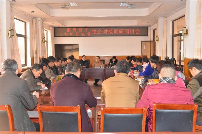226,徽商銀行合肥分行及五里墩支行領導到安徽大壙圩農場開展銀企合作對接,現場研討三農金融服務,并實地調研了場屬重點涉農單位。省農墾集團財務部負責同志及財務總監,農場領導汪登松及各涉農單位負責人、種糧大戶共30多人參加會商研討。