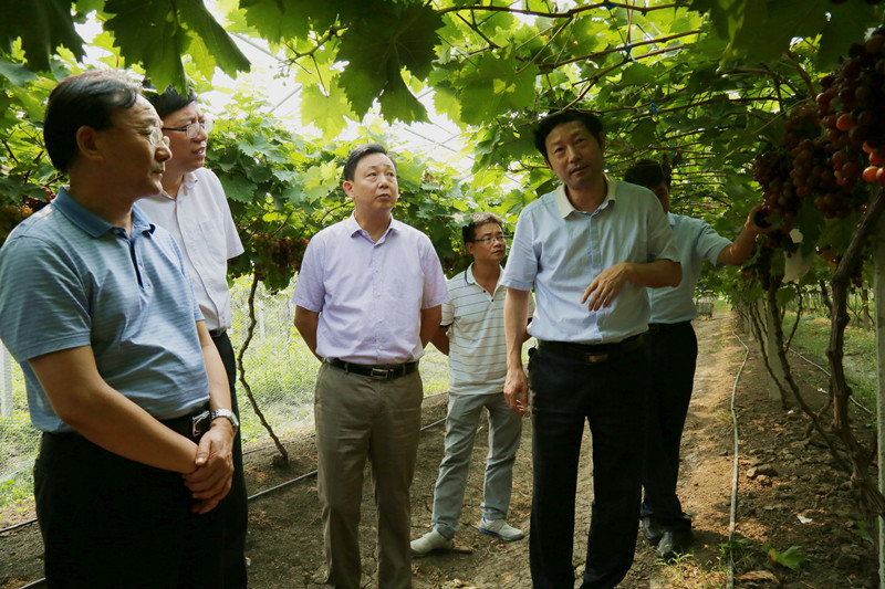 徐義流一行實(shí)地調(diào)研了淮南農(nóng)場(chǎng)“產(chǎn)城一體化”建設(shè)取得的成果、經(jīng)驗(yàn)和做法,現(xiàn)場(chǎng)察看了“淮南農(nóng)場(chǎng)杯”優(yōu)質(zhì)葡萄評(píng)比大賽獲獎(jiǎng)品種——四倍體玫瑰葡萄的負(fù)載量、成熟度、花芽分化等情況。徐義流認(rèn)為,農(nóng)場(chǎng)“舜耕山”牌葡萄生產(chǎn)管理水平較高,場(chǎng)里對(duì)種植戶(hù)統(tǒng)一技術(shù)服務(wù)、統(tǒng)一生產(chǎn)管理、統(tǒng)一零售攤位的管理模式值得推介。他指出,葡萄生產(chǎn)要嚴(yán)控負(fù)載量、修剪好穗形,力求達(dá)到外觀整齊、成熟一致,并對(duì)葡萄生產(chǎn)銷(xiāo)售的有關(guān)細(xì)節(jié)作了具體指導(dǎo)。(陸繼強(qiáng) 李超)