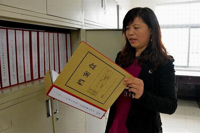 記者在王振榮簡單的辦公室里看到,靠墻邊擺放著一臺老式縫紉機,上面一臺嶄新的檔案扎針機。辦公室主任王偉指著縫紉機說,以前把檔案歸檔前都要把檔案扎好,王振榮就把自家的縫紉機抬來扎檔案。“現(xiàn)在購買的檔案扎針機,她還不舍得用。”