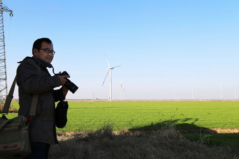 隨后學員們來到國電宿松風電項目所在的二分場,抬頭仰望一臺臺矗立在綠色麥田間的風電機組,“墾記”們向二分場的包場長提問,現有多少組風機?每年生產多少電能?原來風葉轉動一次就能產生10元的利潤……。更多學員則是找好各種角度,捕捉挺拔在碧綠麥田中“大風車”的身姿。