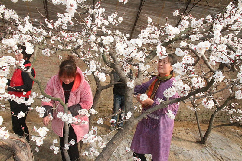 新年元旦以來,安徽碭山果園場(chǎng)深抓高效設(shè)施果園生產(chǎn)管理,為新一年職工高效農(nóng)業(yè)增效增收打好基礎(chǔ)。筆者近日走進(jìn)一分場(chǎng)職工高效杏棚,見到了棚內(nèi)棚外“冰火兩重天”的景象,棚外數(shù)九嚴(yán)冬、寒風(fēng)凜冽,棚內(nèi)杏花綻放、暖意融融,職工正在忙著授粉。望著滿樹滿枝的杏花,杏棚主人、省農(nóng)墾高效農(nóng)業(yè)“三十佳”職工王文萍滿面春風(fēng)地告訴我們:今年雖是受到不利天氣影響,但場(chǎng)里服務(wù)到位、自家管理上心,目前杏棚樹勢(shì)好、生長(zhǎng)旺、花芽多,預(yù)示著又迎來了一個(gè)豐收年。當(dāng)筆者問及每個(gè)棚的收入時(shí),正在現(xiàn)場(chǎng)指導(dǎo)授粉的分場(chǎng)技術(shù)員接茬道:她家去年一個(gè)杏棚收入3萬多元,從目前園相看,今年收入還要好。王文萍趕忙說:場(chǎng)里政策支持好,才讓我家收入一年更比一年高。據(jù)了解,全場(chǎng)在寒冬綻放的高效設(shè)施杏園共有10余畝、8個(gè)大棚。