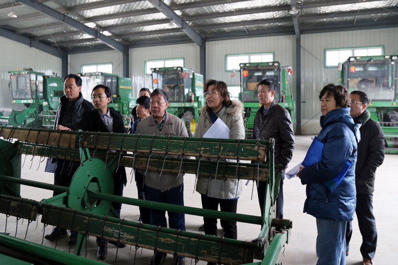專家組一行實地檢查了華豐農機大院及機械存放情況。該農機大院占地約1.76萬平方米,建成農機庫6間、農具庫2間,集農機統一停放、維修保養、技術培訓、現場管理服務于一體,可容納全場現有大中型拖拉機160臺、大中型收割機151臺及配套農具608套。開展農機標準化示范創建一年來,成立了以場長擔綱的創建領導組,加強組織領導,明確目標任務,責任落實到人,現已建成了基礎設施條件,實現了農機裝備水平的提檔升級。