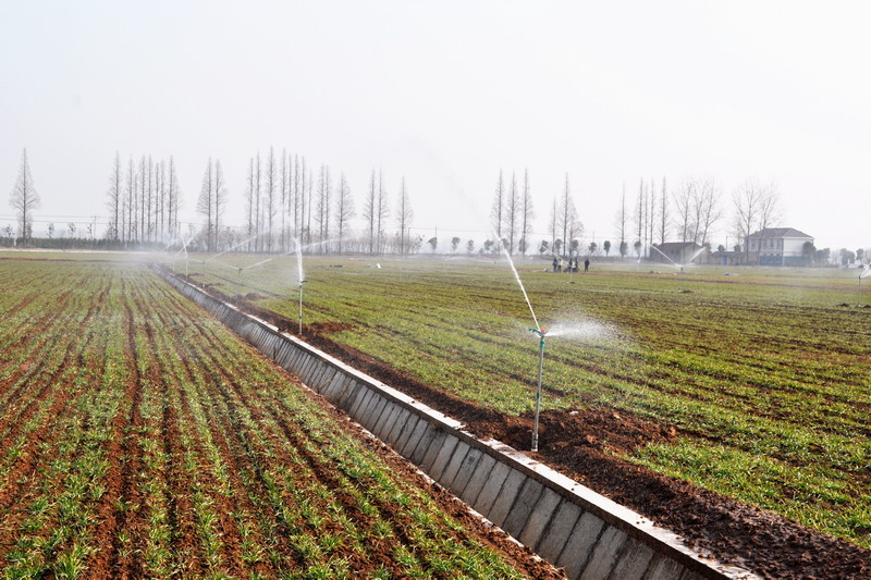 潘村湖農場:麥田自動噴灌節水抗旱