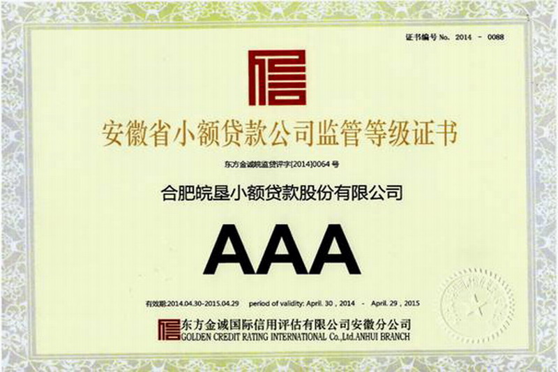 皖墾小貸公司:躋身安徽同行AAA信用等級