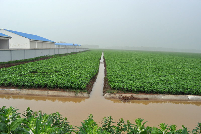 潘村湖農(nóng)場(chǎng):“麥德姆”過(guò)境 大田積水搶排歸槽
