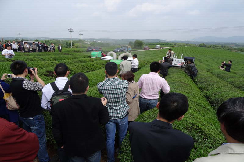 現(xiàn)場會上,大型乘坐式采茶機(jī)、風(fēng)力植保機(jī)、茶園多功能作業(yè)機(jī)等眾多新型茶園作業(yè)機(jī)械紛呈“亮相”。皖墾茶業(yè)所屬4個茶場組織技術(shù)管理人員和種茶大戶參加了觀摩活動。