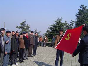 圖片說明:月31日,龍亢農場五、八分場黨支部開 展保持共產黨員先進性教育主題實踐活動,30多 名黨員來到蚌埠烈士陵園,緬懷革命烈士偉績,堅 定了共產主義信念。圖為黨員在烈士陵園重溫入黨 誓詞。(邵乃昌)