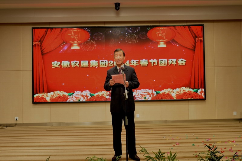 黨委書記、董事長田文俊發表了熱情洋溢的新春賀辭。他說,在中華民族傳統節日春節即將來臨之際,我們歡聚一堂,共迎新春。借此機會,我謹代表省農墾集團向奮斗在墾區各條戰線上的廣大干部職工及家屬,向為農墾事業做出重要貢獻的離退休老同志,向長期以來關心和支持安徽農墾發展的各界朋友,致以誠摯的節日問候,祝大家新年快樂,身體健康,家庭幸福!同時,我們也要向遠在異國他鄉辛勤工作的皖津公司全體員工致以新春的祝福和親切的慰問!