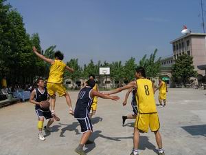 為豐富農(nóng)場職工的節(jié)日文化生活,潘村湖農(nóng)場于4月 28日至29日舉辦了第十六屆職工籃球賽。全場有12 個單位單獨或聯(lián)合組織了9支球隊參加比賽。正在農(nóng) 場調(diào)研的集團公司副總經(jīng)理李卓民興致勃勃地為本 屆比賽開球。經(jīng)過2天共12場激烈比賽,最后一分場 獲得冠軍,糧油公司和建筑公司聯(lián)隊名列第二,二 分場獲得第三名。圖為精彩激烈的比賽瞬間。(楊 登宏攝)