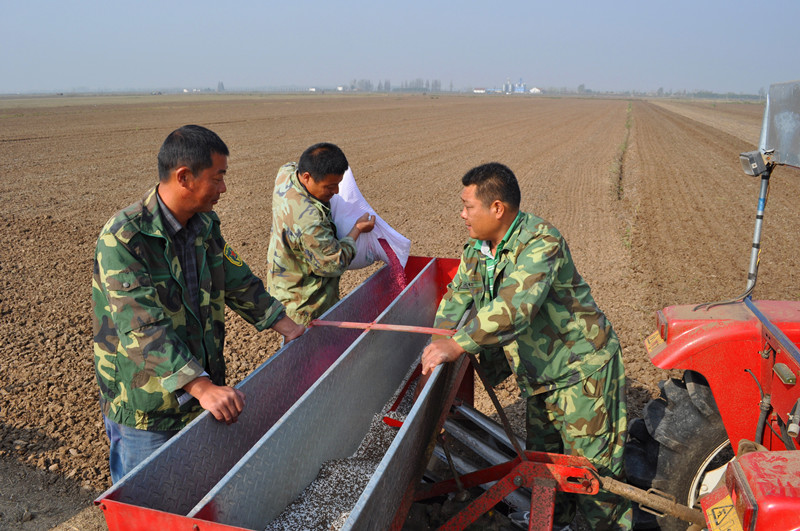 1012,在安徽農(nóng)墾潘村湖農(nóng)場二分場秋種現(xiàn)場,農(nóng)技人員正在指導(dǎo)職工家庭農(nóng)場進(jìn)行精量播種和配方施肥。眼下正值沿淮麥區(qū)冬小麥最佳播期,連日來,該農(nóng)場組織10多支農(nóng)技小分隊(duì)深入田間地頭,面對面指導(dǎo)職工按照小麥高產(chǎn)栽培技術(shù)規(guī)程開展秋種,確保全場新一輪3萬畝大田小麥高產(chǎn)攻關(guān)各項(xiàng)增產(chǎn)技術(shù)措施落到實(shí)處。(楊登宏)