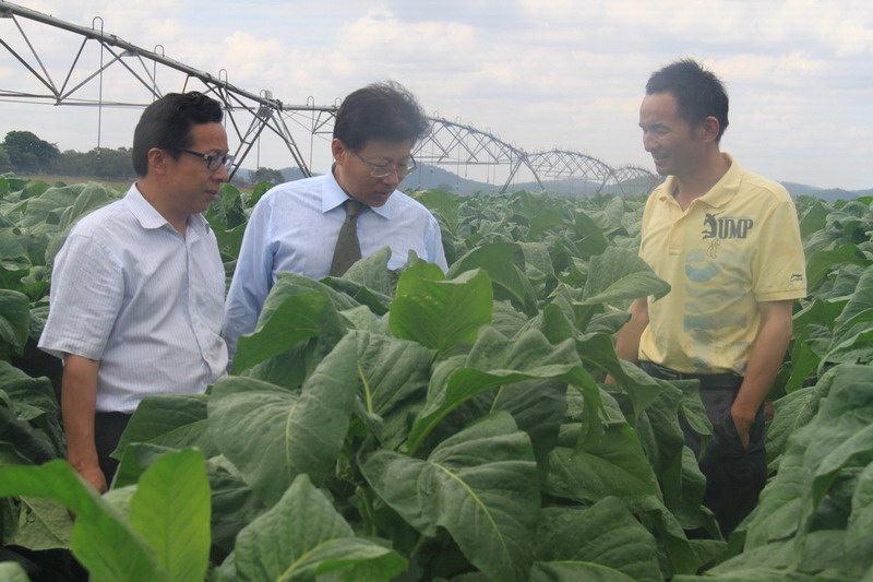 在奧姆斯坦農場,韓兵參贊聽取霍炳宏場長介紹了煙草種植規模、技術措施、質量控制、產品銷售等情況,聽到今年一期煙葉每公頃產量可達3噸、二期已完成育苗移栽時,他非常高興,表示愿意引薦中煙集團加入合作。在琪強磚廠,韓兵參贊重點了解了磚坯生產工藝與質量、用工及當地市場行情,他希望磚廠注重環境保護、盡快打開銷售局面,為中國在津企業做出示范。(董如平