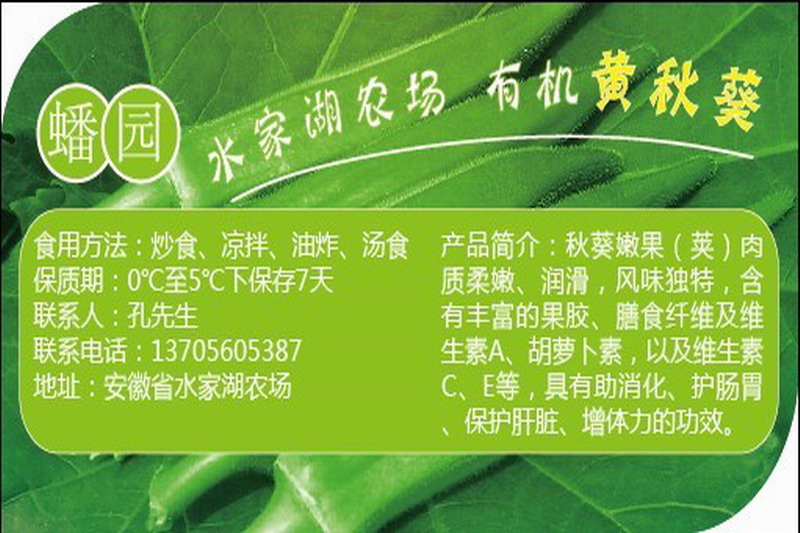 為拓寬市場銷路,“金滿地”合作社對秋葵進行包裝,申請注冊了“蟠園牌”水家湖農場有機黃秋葵商標。孔令篩告訴筆者:“第一次試吃,我就認定這種蔬菜必有好收益,于是大膽購買了種子,今年5月份種上了3畝。”