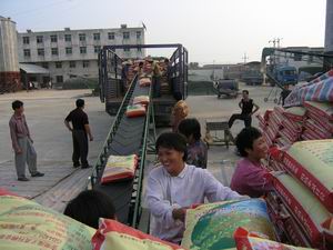 當前正是小麥種子銷售旺季,潘村湖農場種子公司全 力以赴狠抓種子銷售工作.今年生產加工的2500萬斤 優(yōu)質小麥良種已基本銷售完畢,目前正抓緊調運.圖 為職工正在裝運種子的情景.(楊登宏攝)