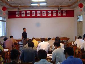 8月5日上午,龍亢農(nóng)場黨委組織全場各黨總支、支 部書記及副科以上干部近40人參加兩個(gè)<<綱要>>理 論知識測試。經(jīng)批閱,參試人員的平均分達(dá)98.25 分。(圖為考試現(xiàn)場)