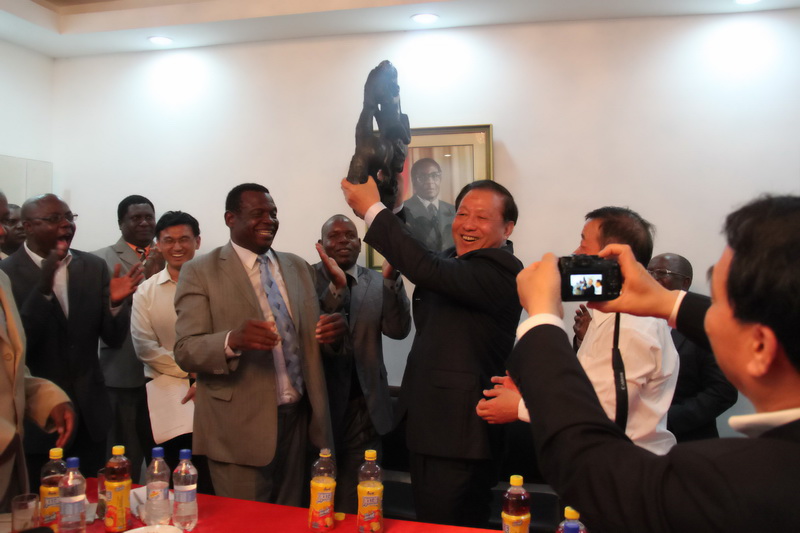 齊達瑞凱瑞省長在會見時說,皖津公司在津兩年間取得了豐碩成果,把荒草地變成了綠洲,為當?shù)孛癖妱?chuàng)造了就業(yè)機會,為奇諾依大學提供了實習實踐基地,更為西馬紹蘭省農(nóng)業(yè)增添了綠色和繁榮,起到了良好的示范帶動效應,省政府倍感榮耀,當?shù)孛癖娊豢诜Q贊。伊柯阮姆巴將軍在致辭中,感謝中國安徽及農(nóng)墾皖津公司為津巴布韋農(nóng)業(yè)發(fā)展作出的貢獻。