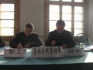 1995年1月,《中華人民共和國勞動法》正式實施, 1996年,全省農墾系統全面推行全員勞動合同制, 企業勞動關系發生了深刻地變化。10年來,勞動合 同制度對深化企業勞動用工制度改革,構建勞企雙 方和諧的勞動關系,維護勞動者和用人單位的合法 權益發揮了重要作用。為切實做好全場職工勞動合 同的續簽工作,場于11月中旬就此項工作進行了宣 傳和部署。