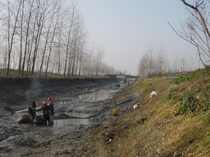 日前,農(nóng)場(chǎng)正抓住有利時(shí)機(jī),因地制宜,緊鑼密 鼓,扎實(shí)開(kāi)展冬修水利工程建設(shè)。農(nóng)場(chǎng)統(tǒng)一安排了 6臺(tái)吸漿機(jī)加緊對(duì)大溝清於;剛剛結(jié)束秋收秋種任 務(wù)的農(nóng)業(yè)單位職工積極響應(yīng)農(nóng)場(chǎng)號(hào)召,不等不靠, 紛紛投入到各自條田溝清於勞動(dòng)當(dāng)中,掀起了水利 冬修的熱潮.(圖為吸漿機(jī)清於作業(yè)現(xiàn)場(chǎng)) (夏慶 芳)
