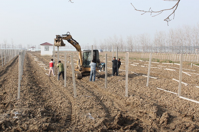 該農場于2月份超前安排了多場高效農業技術培訓班,幫助職工聯系到種苗生產廠家,引進了市場前景看好的葡萄種苗。連日來,在特色葡萄園現場,廣大職工正忙著整地、挖坑、架樁、栽苗,農場指派專門農技人員現場指導職工嚴格按技術規范定植。針對職工家庭農場人手短缺的實際情況,農場宣傳動員職工家屬、社區居民前來幫工,確保葡萄苗早定植、早成活。