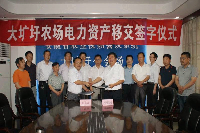 按照安徽農墾集團的統一部署,大壙圩農場去年9月開始啟動電力資產移交工作,通過與天長供電公司的密切合作,各項移交工作現已準備就緒,66日下午,雙方領導班子舉行了簽約儀式,農場除生產辦公以外的電力資產將正式移交給天長供電公司。這是安徽墾區繼東風湖農場之后,電力資產移交的第二個正式簽約農場。