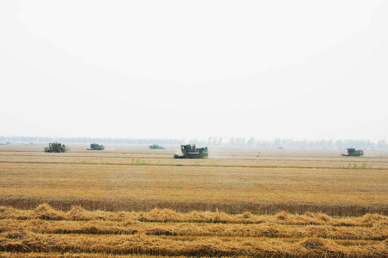 該農場今年小麥種植5.51萬余畝。據氣象部門預測,該區域午收夏種期間天氣多以過程性降雨為主。為確保午收顆粒歸倉、夏種有效推進,農場午收夏種指揮部分析形勢,強化調度,號召全場不等不靠,迅速行動,搶糧保種,成熟一塊、收割一塊,確保6月6日前完成全部收割任務;同時,要求分片蹲點干部和農技人員深入各分場,組織協調,加快進度,確保午收有序進行。至當晚,完成收割任務1500畝,種子糧全部上交種業公司。