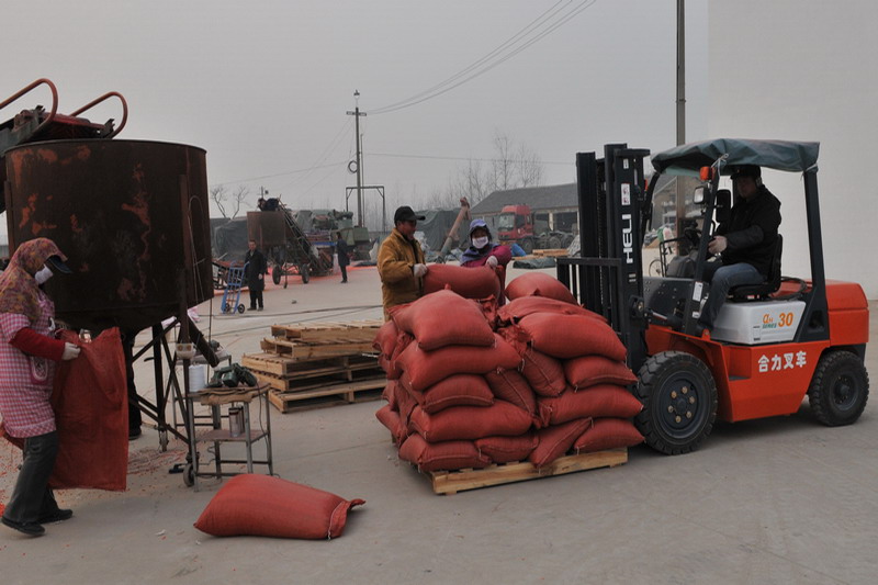 往年冬天,種子產銷進入淡季,種業員工相對“清閑”,而今卻成了他們的“忙季”。2012年8月下旬,為了提升“皖墾”種子品牌,拓展種業經營空間,皖墾種業在方邱湖農場投資550萬元開工建設一條年加工能力1000萬斤的玉米、水稻種子加工線,尚未建成投產,11月中旬即下達給鳳陽分公司在2013年春節前后產銷300萬斤玉米種子的任務。時間緊,任務重,為搶占市場先機,省農墾集團及皖墾種業領導多次蒞臨指導,皖墾種業副總經理吳久好帶隊駐點,和分公司員工一道加班加點,日夜奮戰,方邱湖農場也抽調精干力量支援種業。由于加工線未正式投產,皖墾種業及分公司組織攻關,利用原有機械和部分新設備進行調試組合,滿足了玉米種子加工的質量標準要求。