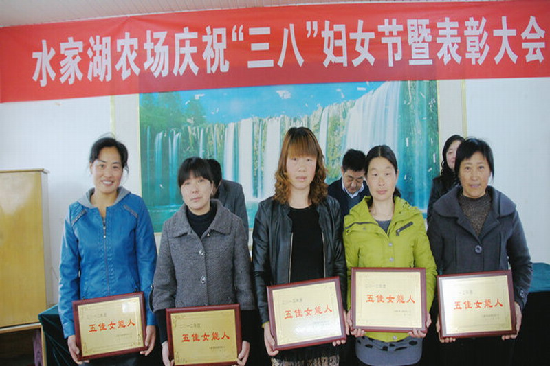 水家湖農場召開慶“三八”表彰大會,表彰了10戶“誠信家庭”、“十佳女職工”、“五佳女能人”和10名“好媳婦”,4名受獎代表作了交流發言,表示要以積極的心態、飽滿的熱情投身農場經濟建設主戰場,在農業發展、體制改革、項目工作、民生工程、場鎮建設、環境改善等各項工作實踐中找準位置、創造業績、展示風采。皖河農場邀請安慶市大觀區司法局、婦聯前來開展《婦女權益保護法》、《家庭教育報》、《婚前健康檢查》等咨詢活動,加強法制宣傳教育,強化了婦女維權意識,促進了農場和諧穩定;同時,該場還舉辦女職工聯歡會、評選表彰了“十佳好媳婦”,弘揚了中華民族傳統美德,營造了尊老、敬老、愛老正能量。正陽關農場舉行女職工座談會,與會女工暢談農場日新月異的變化和逐漸提高的生活水平,表示要繼續發揮“半邊天”作用,為農場科學和諧發展貢獻力量。