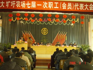 會議還聽取了場黨委副書記楊朝幸同志作的題為 《團結動員廣大職工,為實現農場“十一五”發展 的宏偉目標而努力奮斗》的工會工作報告,聽取了 《大壙圩農場經濟和社會發展“十一五”規劃》及 財務工作、場務公開、招待費、福利費、醫療費使 用情況的報告。