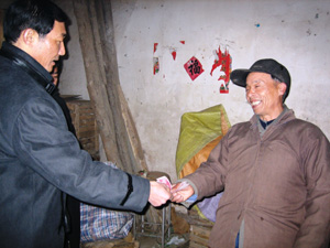 元月14日上午,場長曹長春、黨委副書記高玉剛、 副場長錢超和人力資源部、工會辦的有關人員一道 對全場困難職工進行慰問。