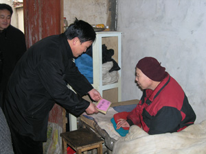 1月18日上午,當因病臥床的潘村湖農場職工張永明 接過韓大鳴場長遞上的慰問金時,連聲感謝組織上 的關懷.今年元旦、春節期間,潘村湖農場多方籌 集資金對生活困難的勞動模范、離退休人員和因天 災人禍年支出4000元以上的職工家庭開展了“送溫 暖”慰問活動,向他們發放了慰問金,帶去了組織 上的溫暖,確保每一個家庭都過一個安定祥和的春 節。(楊登宏)
