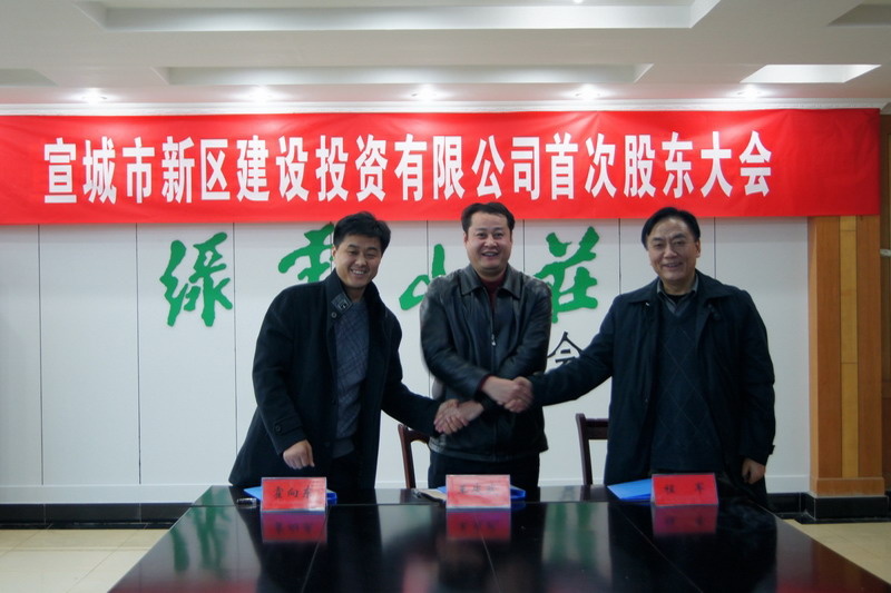 1218下午,由安徽農(nóng)墾集團(tuán)、建工集團(tuán)、宣城市合作投資的宣城市新區(qū)建設(shè)投資有限公司創(chuàng)立大會在農(nóng)墾敬亭山茶場勝利召開。宣城市彩金湖新區(qū)開發(fā)投資有限公司王慶武、省農(nóng)墾集團(tuán)副總經(jīng)理程軍、建工集團(tuán)副總經(jīng)理霍向東分別代表三家股東參加了首次股東大會。