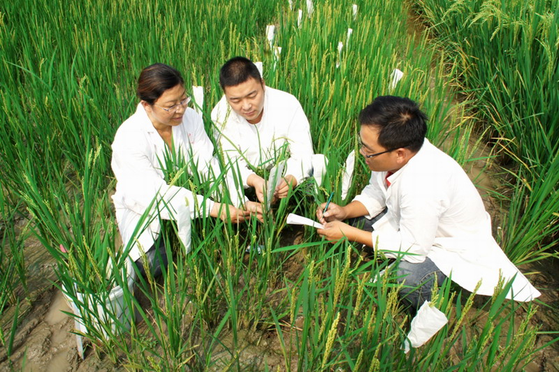 圖為農(nóng)業(yè)科技人員在做水稻雜交授粉