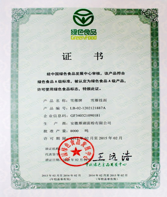 近日,安徽農墾雁湖面粉有限公司技術中心被蚌埠市經信委等七部門評審認定為市級企業技術中心。這將為雁湖公司擴大生產經營規模、提升產品附加值提供了有效保障。與此同時,該公司生產的雁湖牌特級小麥粉、特一小麥粉和雪雁牌雪雁掛面、龍須面、高筋面、玉帶面、雞蛋面、蕎麥面、綠豆面9個系列產品,通過中國綠色食品發展中心審核續展,認定為A級綠色食品。