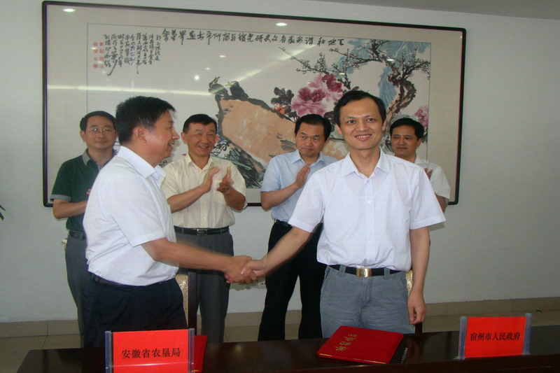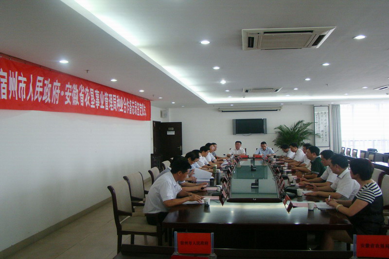 為進一步深化墾地合作內容,在2010年10月29日安徽農墾與宿州市的戰略合作框架協議基礎上,經過多輪洽談,7月11日上午,省農墾集團(省農墾事業管理局)與宿州市人民政府簽訂了種業合作備忘錄。