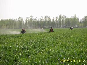 播小麥田進行施藥防治。(圖為七分場對出穗率達
