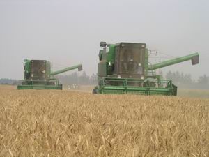 為圓滿完成今年午收夏種工作,該場于6月3日召開 了由各分場管理人員,二、三產(chǎn)單位領導班子成員 和機關各科室負責同志參加的午收夏種動員大會, 對今年全場午收夏種工作做了周密部署。全場3.2 萬畝小麥計劃在6月12日前全部收割完畢。根據(jù)田 間測產(chǎn)和已收獲地塊測算,今年全場小麥平均單產(chǎn) 將突破900斤,創(chuàng)建場42年來最高紀錄。圖為收割 場景。(楊登宏攝)