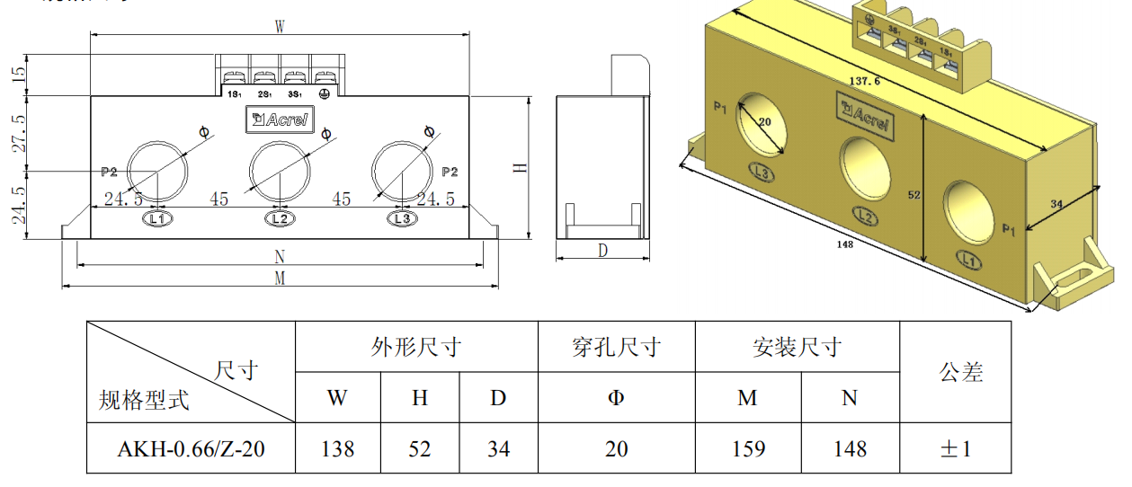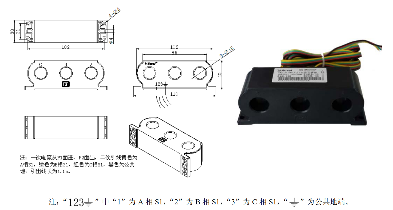 產品外形美觀,接線方便。外殼材料采用 PPT,作為交流電流信號采集元件,一般與AMC16配套使用,可減小電流互感器安裝空間和接線的煩瑣,為用戶降低成本。