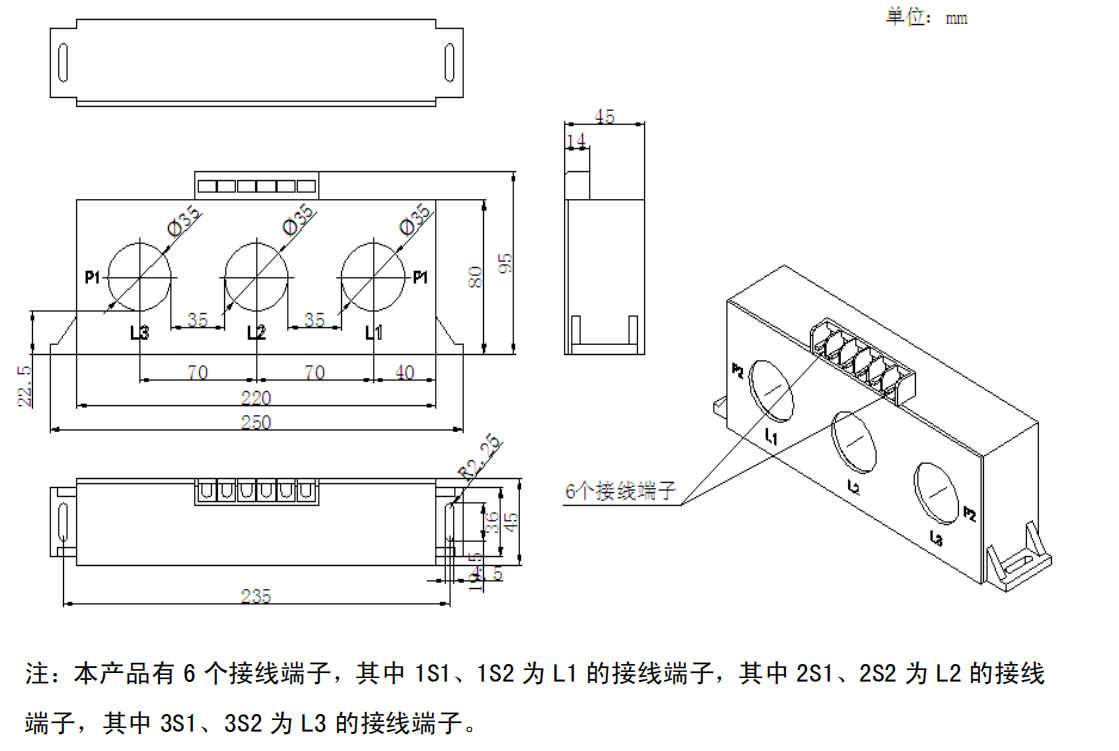 產品外形美觀,接線方便。外殼材料選用阻燃 PC/ABS 合金,作為交流電流信號采集元件,一般與 AMC16配套使用,可減小電流互感器安裝空間和接線的煩瑣,為用戶降低成本。