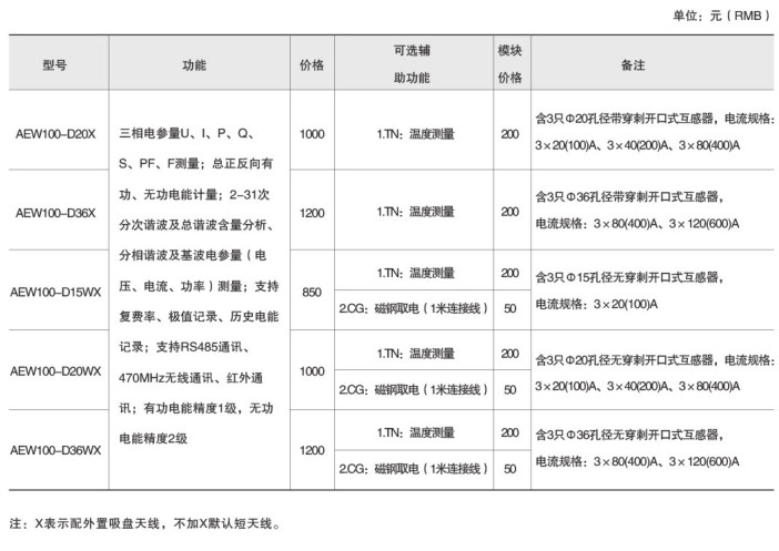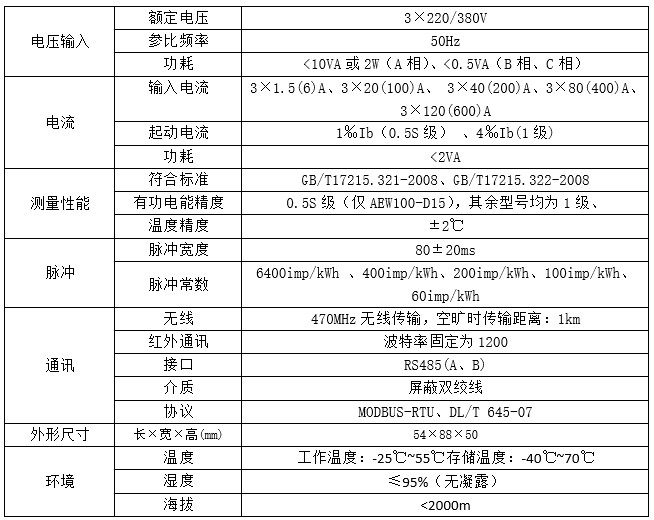 AEW100無線計量表主要用于計量低壓網絡的三相有功電能,具有RS485通訊和470MHz無線通訊功能,方便用戶進行用電監測、集抄和管理。