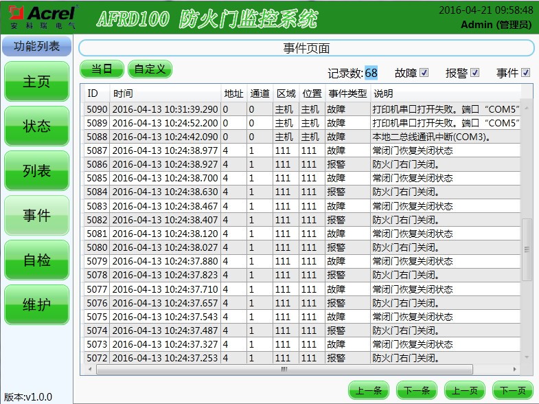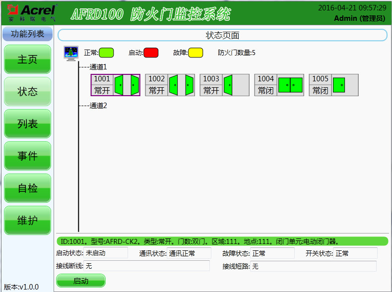 常開單門 | AFRD-CK1 | 接收常開單扇防火門的狀態信息并將其反饋至監控器,同時將監控器的指令傳遞給電動閉門器、電磁釋放器 |
