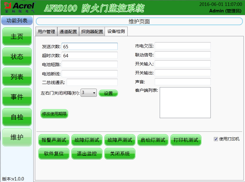 實時接收、檢測并顯示各路防火門裝置的工作狀態信息,并能在分析、整合后,發出指令控制常開防火門的關閉 |